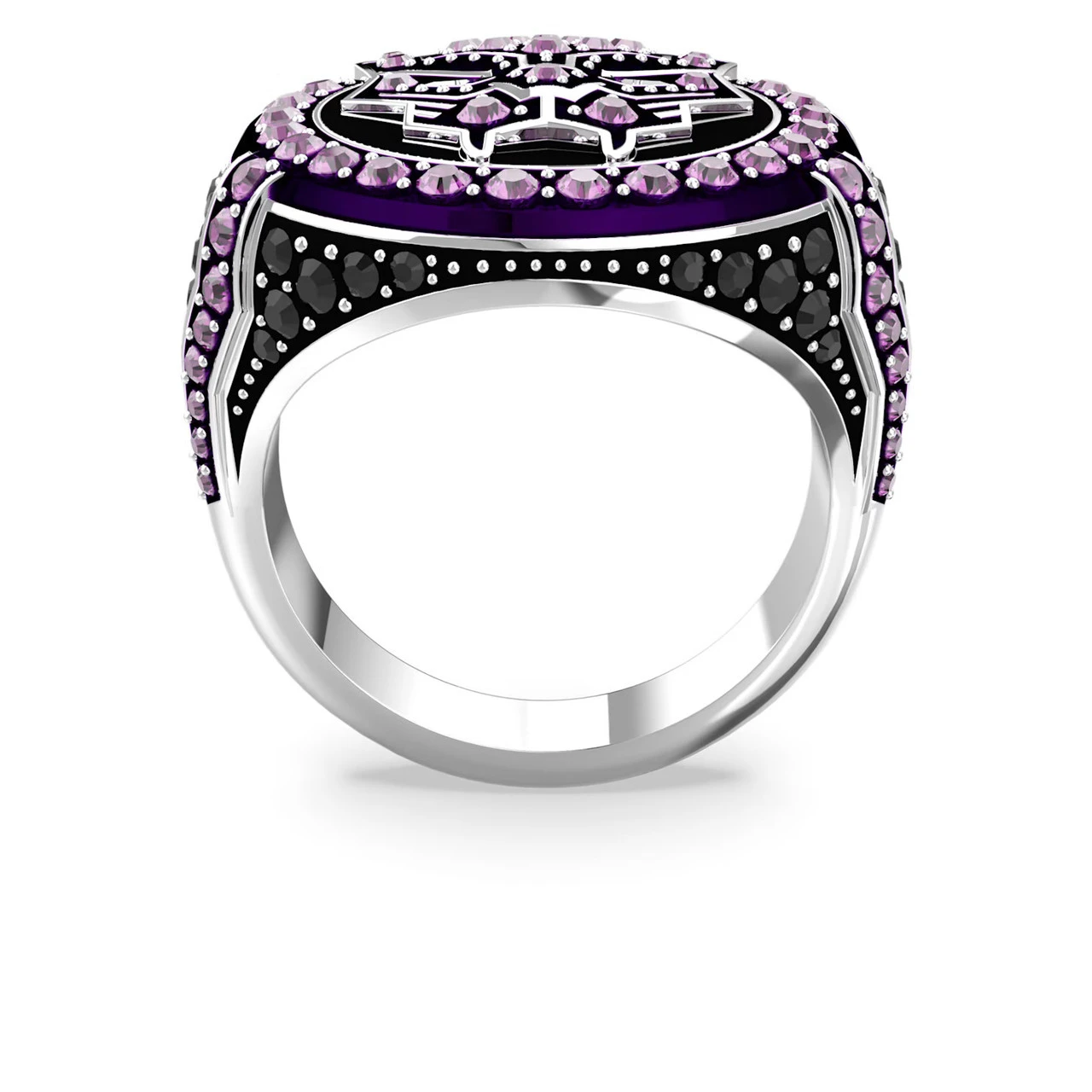 Wear your love for the Marvel universe with this bold motif ring. This dynamic Black Panther design can be the superhero of your own unique style, with a rhodium plated setting and the character’s familiar mask created from vibrant purple crystals. A perfect gift for yourself or your favorite Marvel fan.