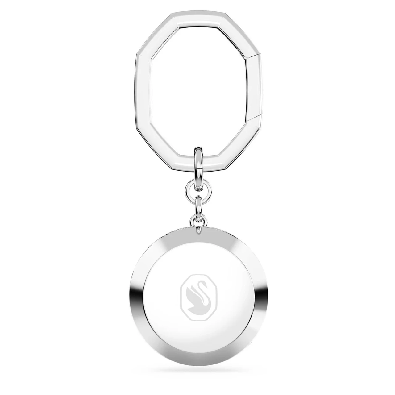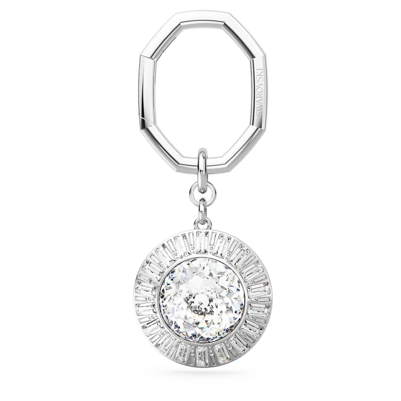 Ignite your everyday style with this radiant key ring, inspired by the Lucent jewelry collection. The octagonal link connects to a wondrous round-shaped stone, which is placed within a rhodium plated setting and further surrounded by a frame of rectangular clear stones. A joyful accessory to brighten the mood wherever you go.