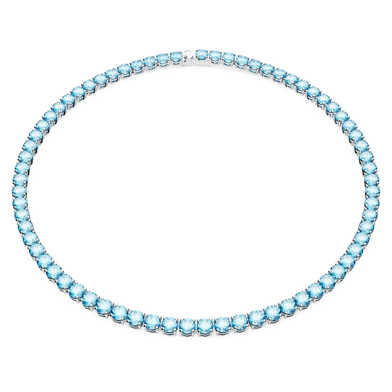 This Matrix Tennis necklace is designed for instant radiance. Each round stone features a vivid blue tone, and when combined in a perfect row on a rhodium plated chain the effect is dazzling. It’s the fluidity and vibrancy of this piece that makes it an easy choice to enhance everyday wear.