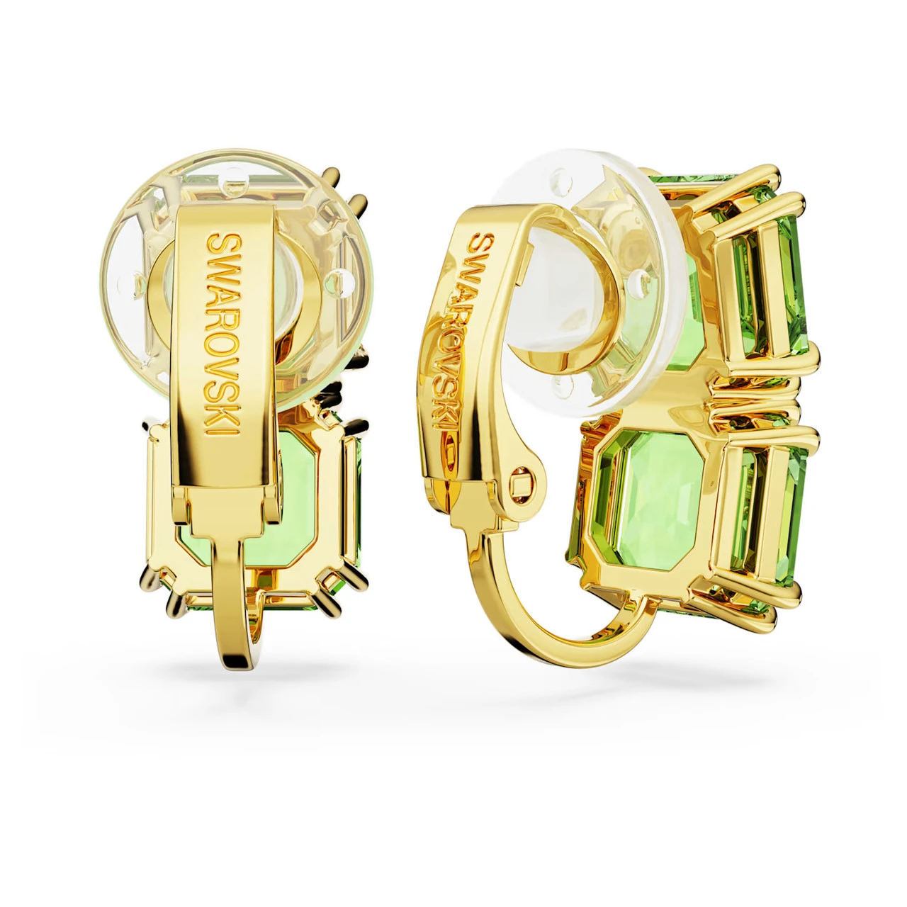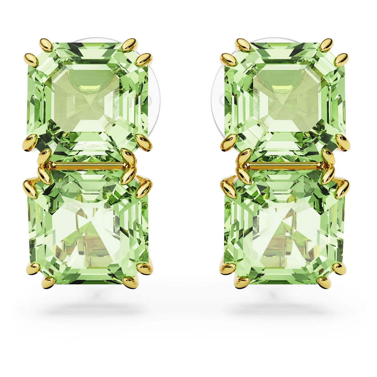 For a beautiful twist on style, these Millenia earrings embrace vibrant color. While gold-tone plating provides the framework, the radiance is delivered by green square-cut crystals. Wear them to off-set the casual simplicity of a plain white t-shirt.