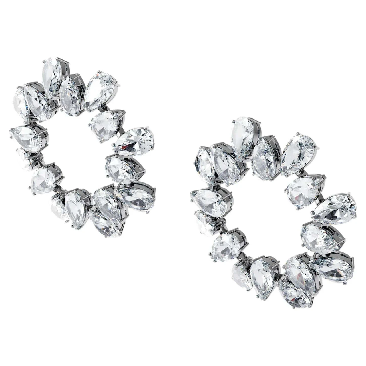A sculptural show stopper, these crystal earrings are artfully formed from clear pear cut crystals and complete with a rhodium plated setting. Worn with bare shoulders, these crystal earrings can be paired with necklaces from the Millenia family for dazzling impact, or styled alone with a simple black V-neck to contrast with the circular design. This earrings are part of the Millenia family, designed by Creative Director Giovanna Engelbert for Collection I.