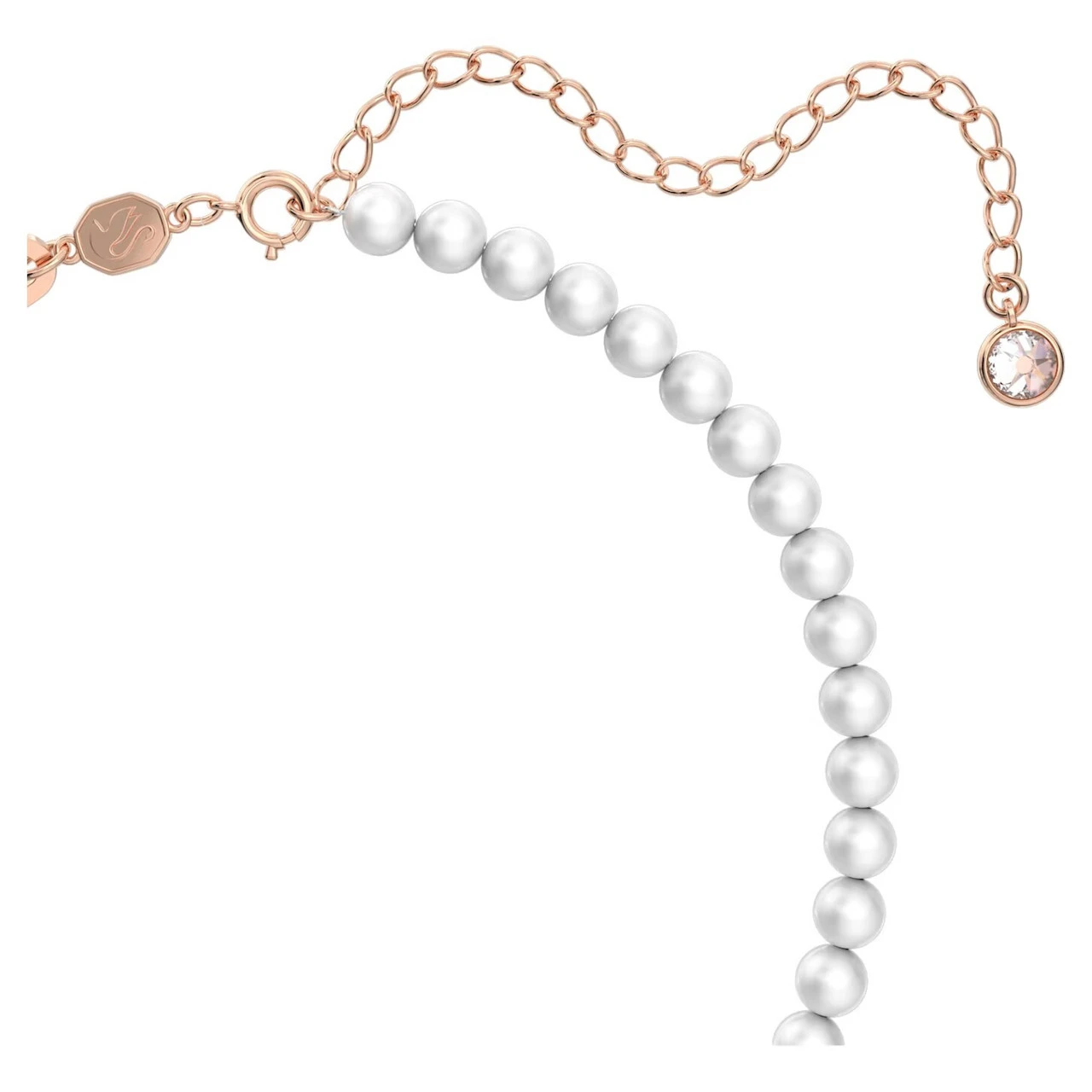 Work wonders in this beautiful pendant from the Stella family. Showcasing a stylish combination of crystal pearls and shimmering stones finished with rose gold-tone plating, this asymmetric design is sure to turn heads wherever you wear it. Style it solo and prepare to shine.